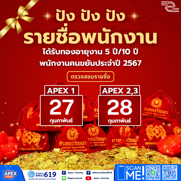 >>ตรวจสอบรายชื่อ<< พนักงานได้รับทองอายุงาน 5 ปี/10 ปี และพนักงานคนขยันประจำปี 2567 | 20 February 2025
