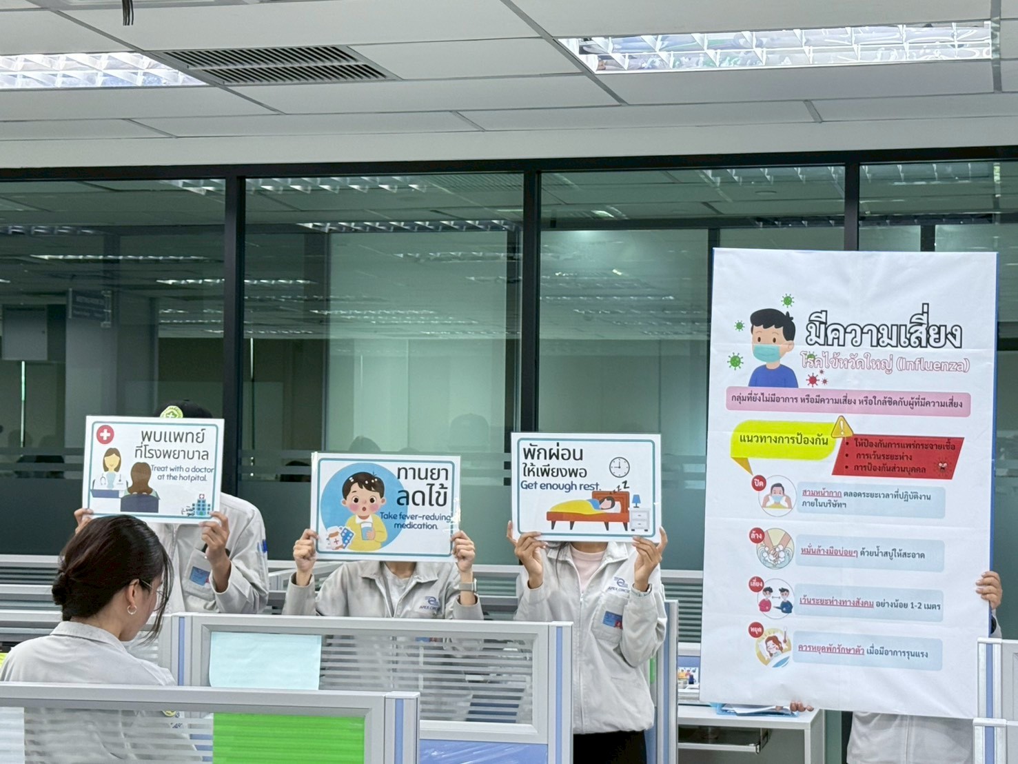 เนื่องจากในปัจจุบันโรคไข้หวัดใหญ่มีการแพร่กระจายอย่างรวดเร็ว และพบว่ามีผู้ป่วยโรคไข้หวัดใหญ่เพิ่มขึ้นเป็นจำนวนมาก แผนกความปลอดภัยจึงได้เข้าต่อกะให้ความรู้แก่พนักงาน เรื่องโรคไข้หวัดใหญ่ เพื่อให้พนักงานมีความรู้ความเข้าใจเรื่องการสังเกตอาการ วิธีการป้องกันเพื่อไม่ให้กิดโรค รวมถึงวิธีการปฏิบัติหรือวิธีการรักษาหากเป็นโรคไข้หวัดใหญ่