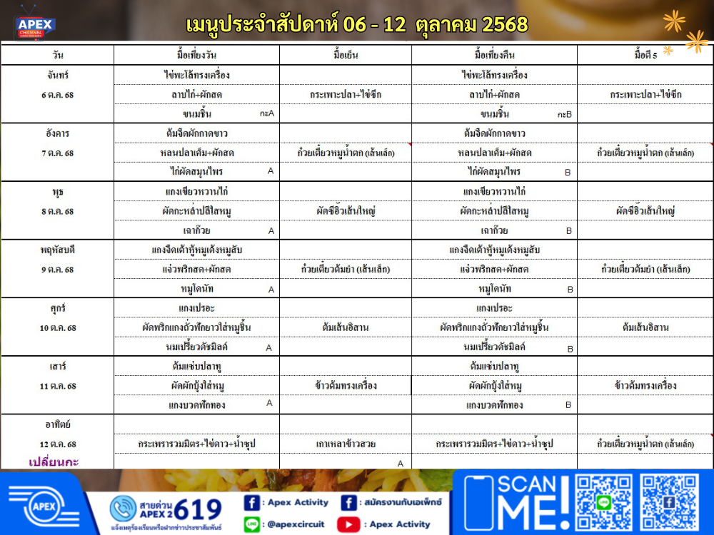 เมนูอาหารประจำสัปดาห์วันที่ 06 – 12 ตุลาคม 2568 Company News 07 ต.ค. 2025 share tweet share เมนูอาหารประจำสัปดาห์วันที่ 06 – 12 ตุลาคม 2568 โดยได้มีการสำรวจความต้องการจากทีม WF และคณะกรรมการที่มีส่วนเกี่ยวข้องและได้อนุมัติโดย ตัวแทนคณะกรรมการสวัสดิการ📧 หากท่านใดมีข้อเสนอแนะ สอบถามรายละเอียดเพิ่มเติมได้ที่ GA-G โทร 719 ขอบคุณครับ ขอความร่วมมือพนักงานทุกท่าน “ห้ามจองที่นั่งพื้นที่โรงอาหาร” Facebook Youtube Line
