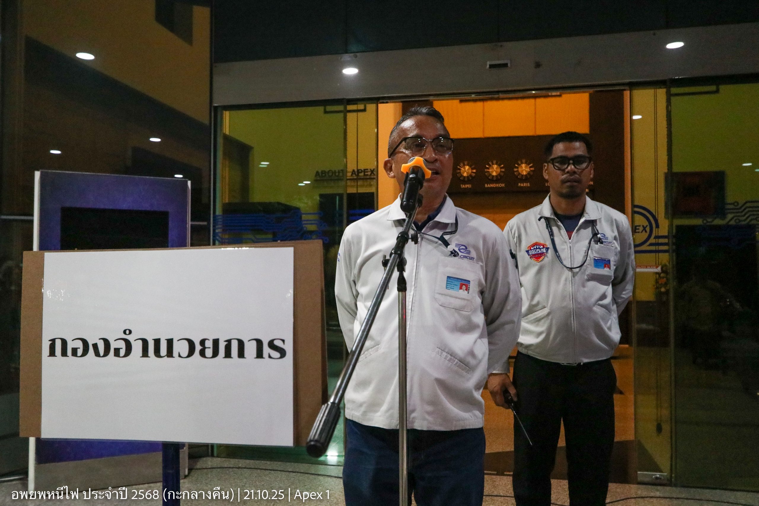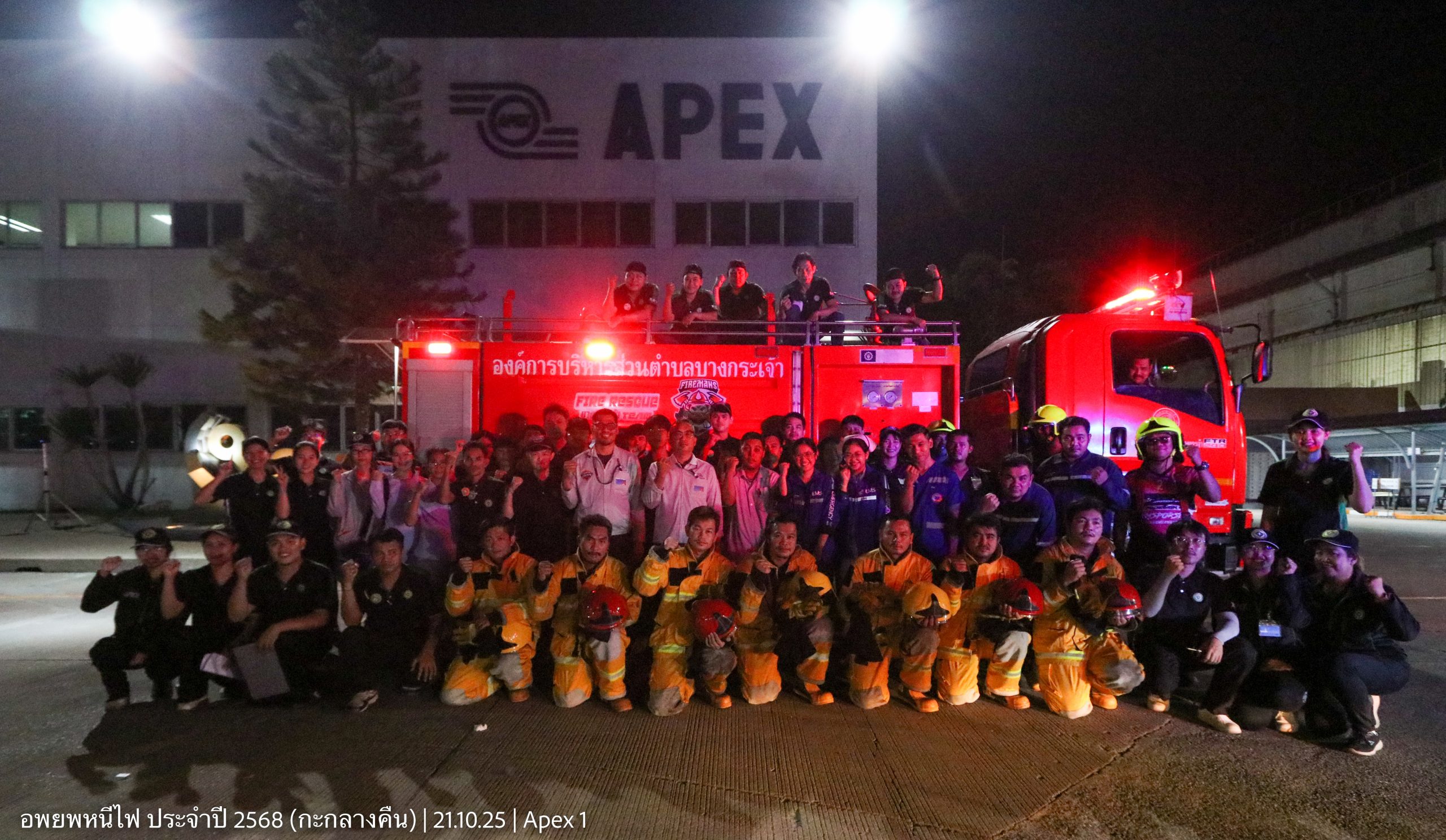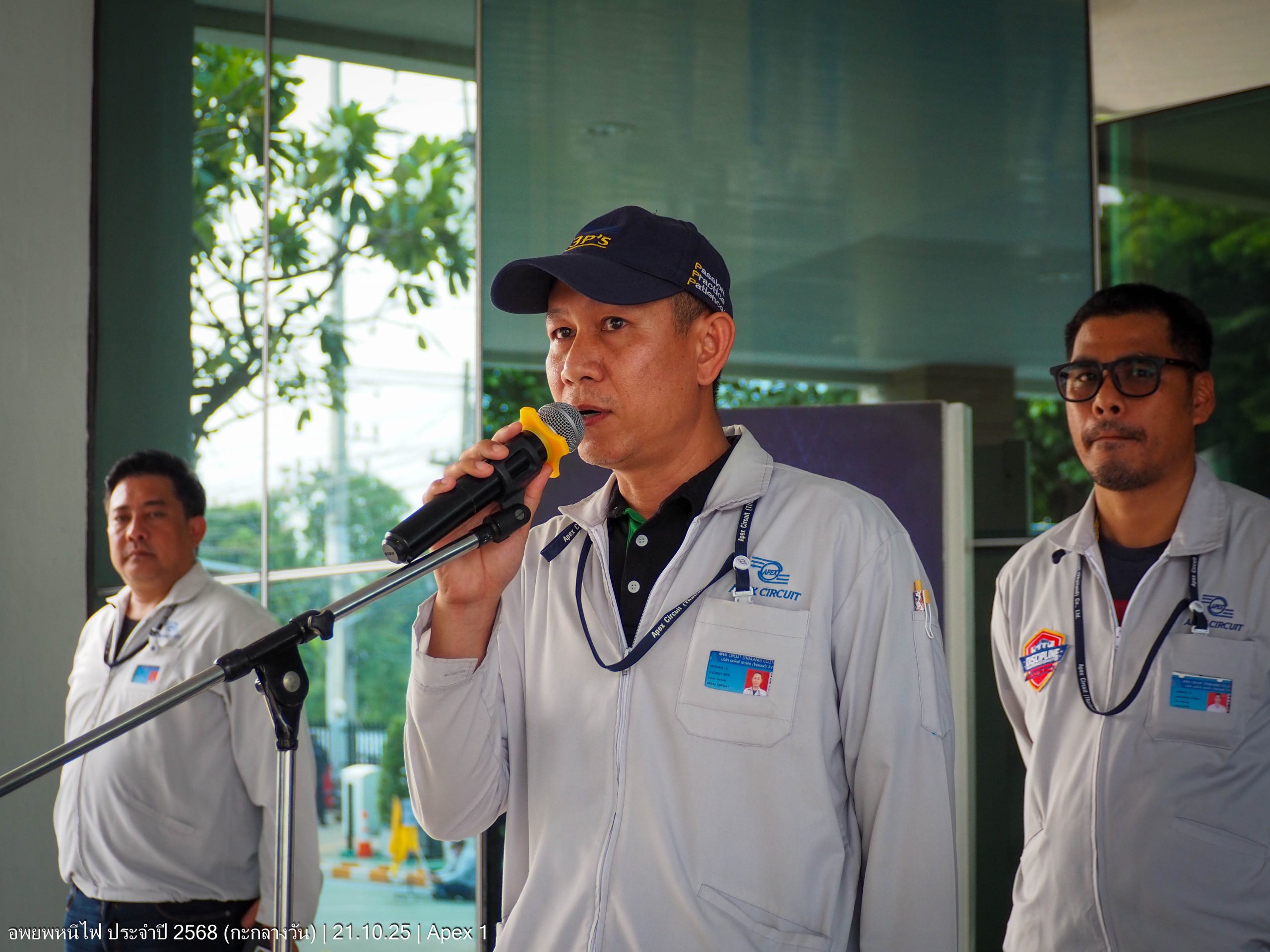 เมื่อวันอังคารที่ 21 ตุลาคม 2568 ที่ผ่านมา บริษัท เอเพ็กซ์ เซอร์คิต (ไทยแลนด์) จำกัด ได้จัดกิจกรรมการฝึกซ้อมดับเพลิงและอพยพหนีไฟ ประจำปี 2568 ของ APEX 1 ทั้งพนักงานกะกลางวันและกะกลางคืน