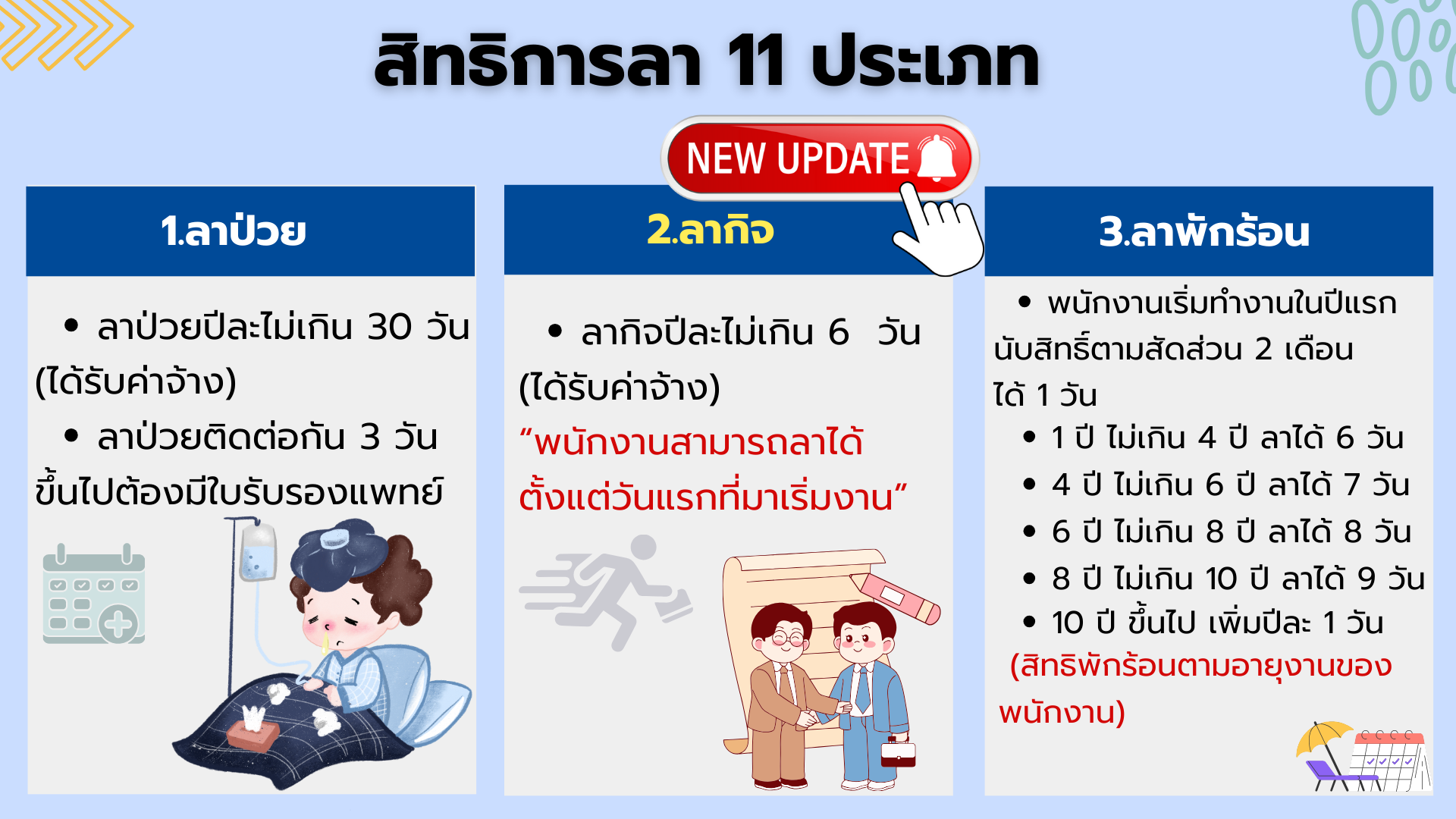 ทบทวนสิทธิ์การลาของพนักงาน Company News 24 พ.ย. 2025 share tweet share ทางแผนกบุคคล(HR) ขออนุญาตแจ้งให้พนักงานทุกท่านได้รับทราบในเรื่องของ สิทธิ์การลา 11 ประเภท เพื่อให้เป็นไปตามนโยบายล่าสุดของบริษัทและข้อกฎหมายแรงงานที่เกี่ยวข้องหากต้องการติดต่อสอบถามรายละเอียดเพิ่มเติม สามารถติดต่อได้ที่ แผนกบุคคล โทร 116 หรือ ทักมายังช่องทางไลน์ Apex Channel Facebook Youtube Line