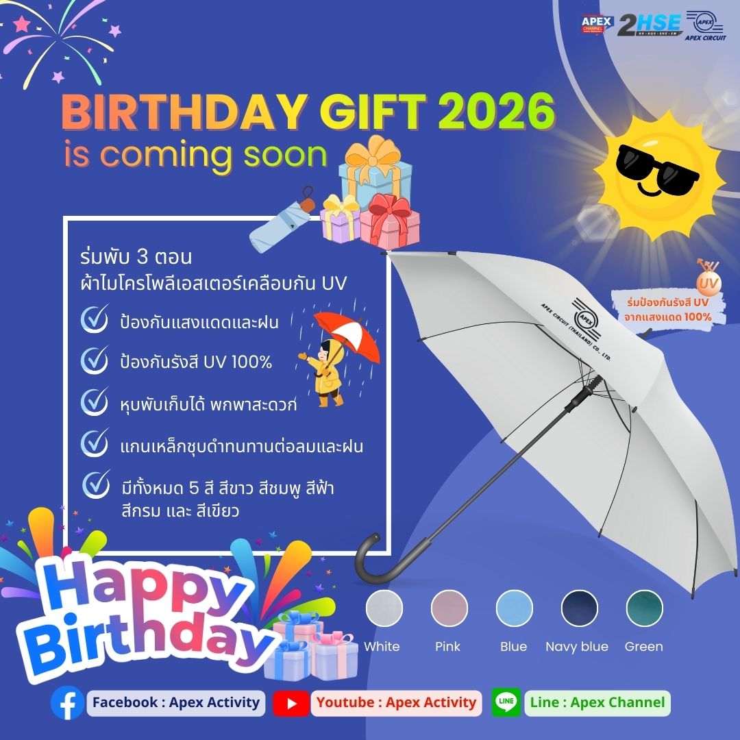 เปิดตัวของขวัญวันเกิดสำหรับพนักงาน ทางบริษัทเอเพ็กซ์ขอส่งมอบของขวัญแทนใจด้วย”ร่มสุดชิค” เป็นของขวัญวันเกิดให้กับพนักงานทุกท่านในปี 2026