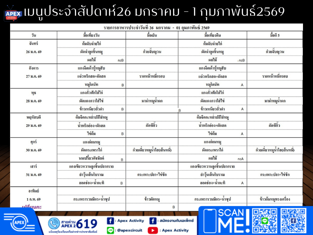 All ADM News (ฉบับที่ 7/2569) เมนูอาหารประจำสัปดาห์วันที่ 26 มกราคม – 1 กุมภาพันธ์ 2569