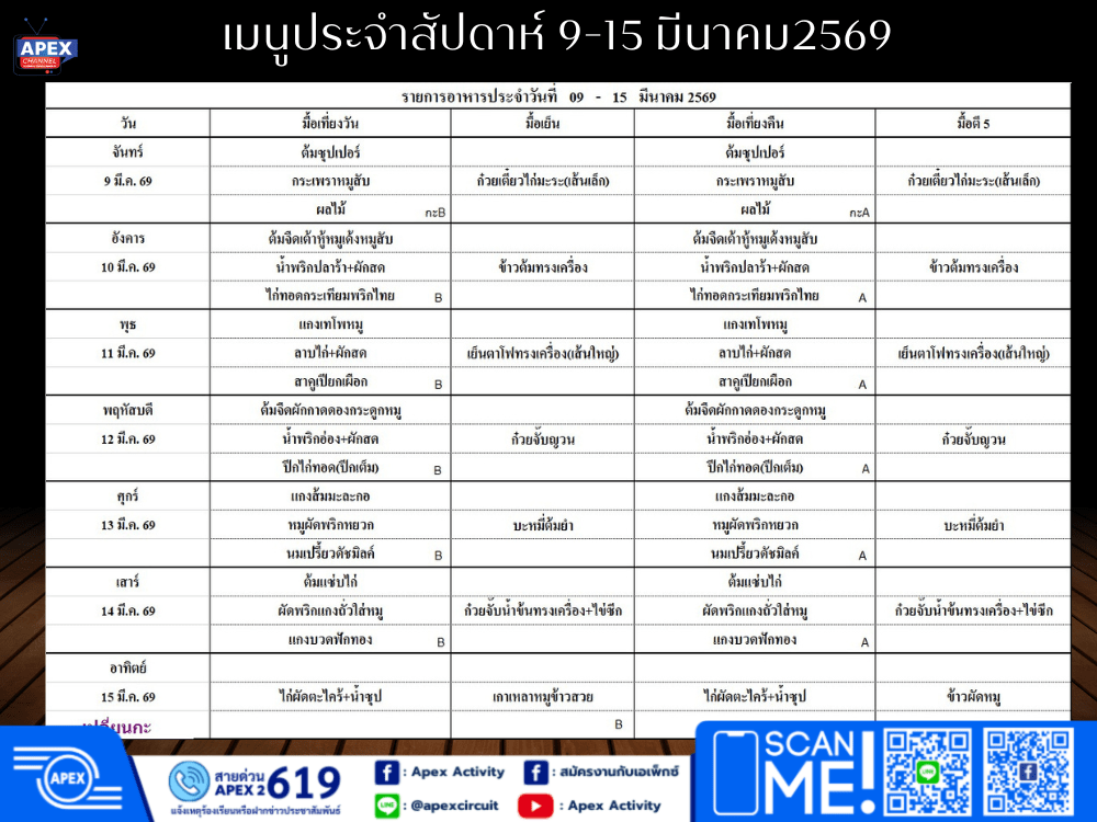 All ADM News (ฉบับที่ 28/2569) เมนูอาหารประจำสัปดาห์วันที่ 9-15 มีนาคม 2569 Company News 10 มี.ค. 2026 share tweet share เมนูอาหารประจำสัปดาห์วันที่ 9-15 มีนาคม 2569 โดยได้มีการสำรวจความต้องการจากคณะกรรมการที่มีส่วนเกี่ยวข้องและได้อนุมัติโดย ตัวแทนคณะกรรมการสวัสดิการ ขอความร่วมมือพนักงานทุกท่าน “ห้ามจองที่นั่ง” พื้นที่โรงอาหารหากท่านใดมีข้อเสนอแนะ สอบถามรายละเอียดเพิ่มเติมได้ที่ GA-G โทร 719 ขอบคุณครับ Facebook Youtube Line