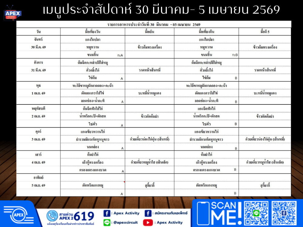 All ADM News (ฉบับที่ 41/2569) เมนูอาหารประจำสัปดาห์วันที่ 30 มีนาคม – 5 เมษายน 2569 Company News 30 มี.ค. 2026 share tweet share เมนูอาหารประจำสัปดาห์วันที่ 30 มีนาคม – 5 เมษายน 2569 โดยได้มีการสำรวจความต้องการจากคณะกรรมการที่มีส่วนเกี่ยวข้องและได้อนุมัติโดย ตัวแทนคณะกรรมการสวัสดิการ ขอความร่วมมือพนักงานทุกท่าน “ห้ามจองที่นั่ง” พื้นที่โรงอาหารหากท่านใดมีข้อเสนอแนะ สอบถามรายละเอียดเพิ่มเติมได้ที่ GA-G โทร 719 ขอบคุณครับ