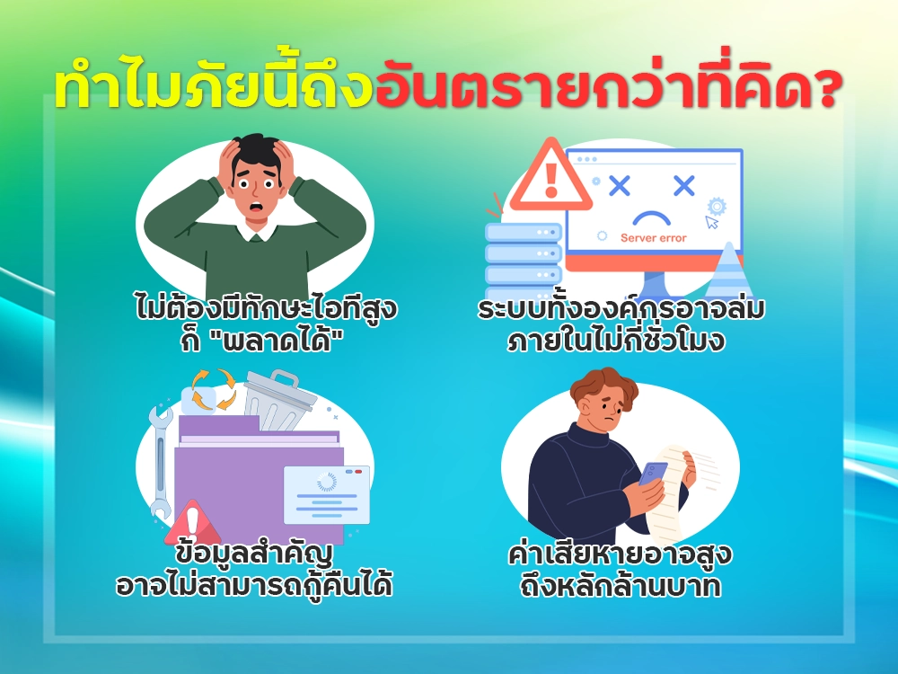 ในหลายกรณี องค์กรต้องหยุดการทำงานชั่วคราว สูญเสียทั้งข้อมูล เวลา และความน่าเชื่อถือ
